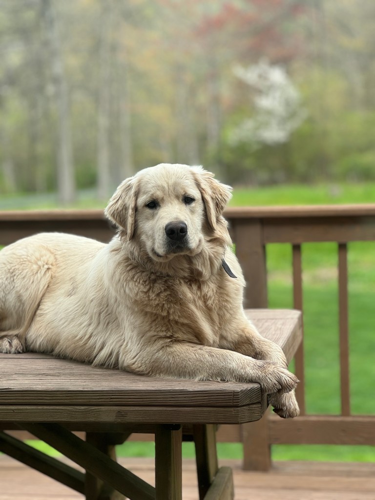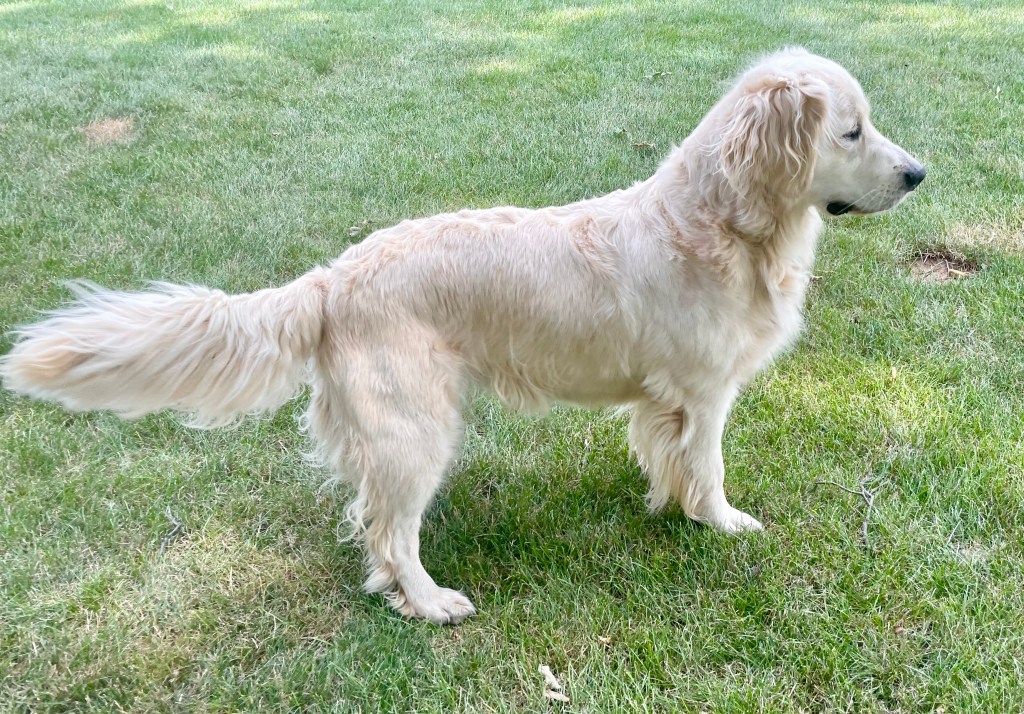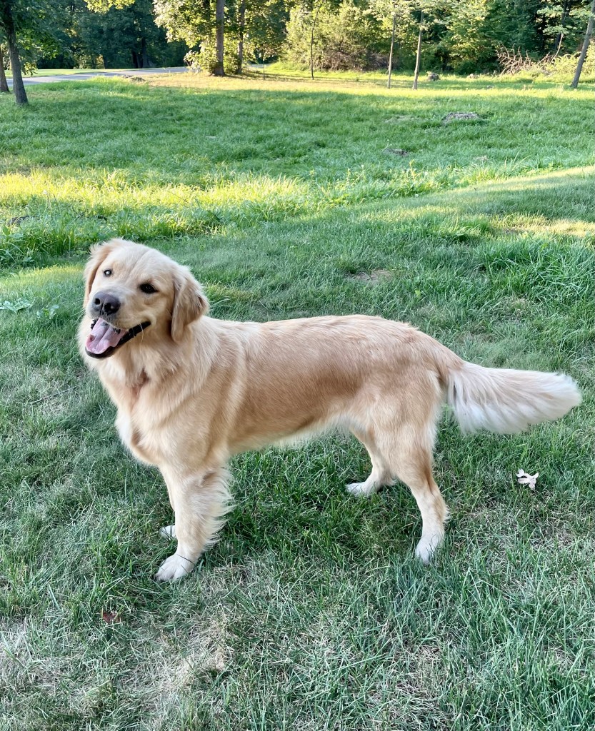 Nova is a beautiful, cream colored Golden who was born at Fox Creek Goldens in 2020. She was adopted by a local family and spent a few years with them before we were given the opportunity to bring her back! She has had several litters of pure-bred Goldens.